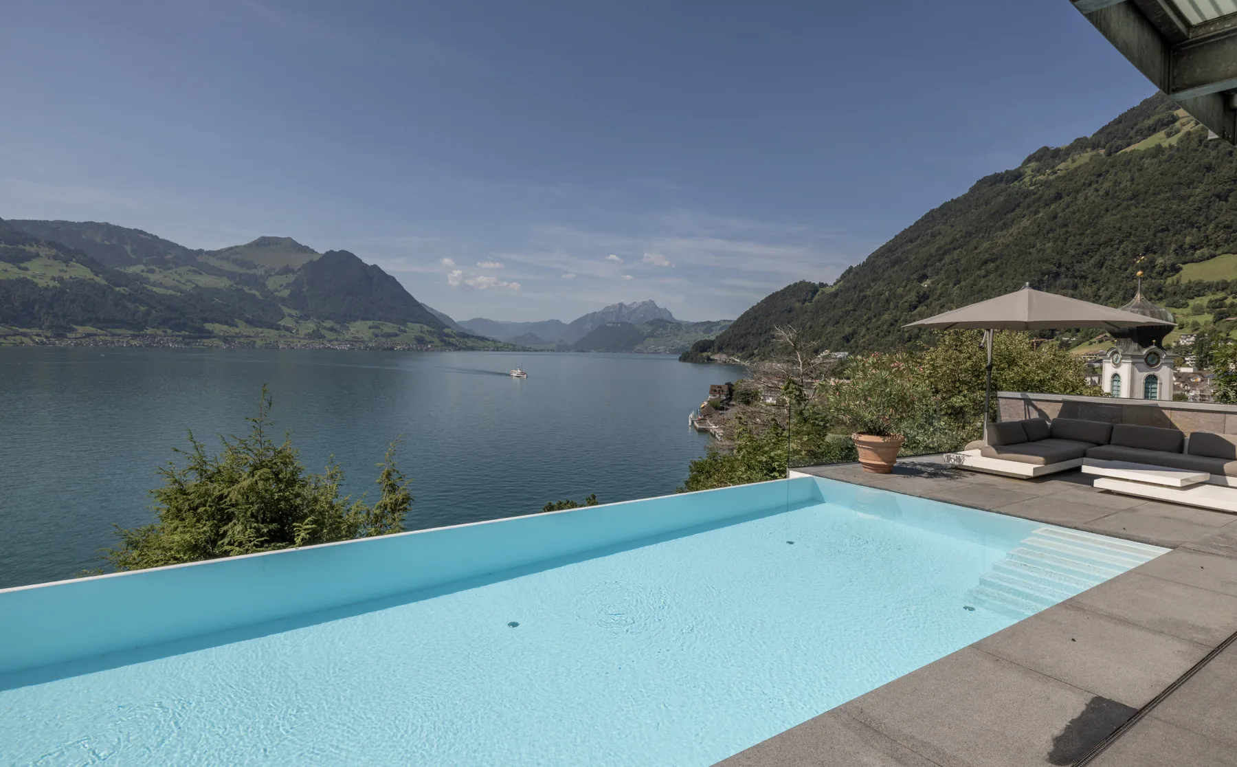 Das lichtdurchflutete Einfamilienhaus schwebt über dem Vierwaldstättersee und besitzt dadurch eine unendliche Weitsicht aus jedem Raum, welche nicht zu übertreffen ist. Eine Ruheoase abseits vom hektischen Treiben und in nur wenige Gehminuten vom Zentrum und der Schiffstation entfernt. Das unterschiedlich nutzbare Raumkonzept spricht Paare wie Familien gleichwohl an.